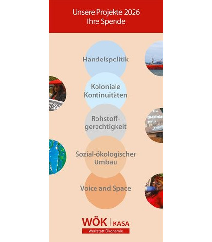 Was lange selbstverständlich schien – ein lebendiger zivilgesellschaftlicher Raum, kritische Stimmen, Räume für Debatte – gerät zunehmend unter Druck. Und während die Herausforderungen wachsen, schrumpfen die finanziellen Mittel für Organisationen, die genau jetzt so dringend gebraucht werden. Gleichzeitig häufen sich Krisen: Klimakatastrophe, weltweiter Rechtsruck, wachsende soziale Ungleichheit und globale Spannungen. Viele Menschen empfinden Ohnmacht angesichts dieser Entwicklungen. Doch wir glauben fest daran: Veränderung entsteht, wenn wir Zusammenhänge verstehen und uns gegenseitig stärken. Die Werkstatt Ökonomie arbeitet genau an diesem Punkt. Wir schaffen Räume für kritische Analysen, Begegnung und das Nachdenken über gerechtere Wirtschafts- und Gesellschaftsmodelle. Wir pflegen internationale Partnerschaften und beziehen historische Perspektiven ein, weil nur wer die Ursachen kennt, Wege in eine bessere Zukunft öffnen kann. Im beiliegenden Faltblatt stellen wir Ihnen einige...