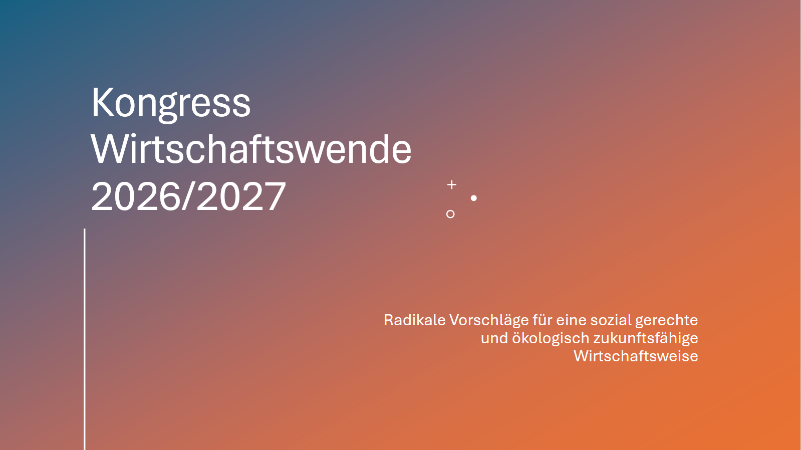 Die Werkstatt Ökonomie e.V. arbeitet gemeinsam mit Partnerorganisationen an der Idee eines großen Wirtschaftswende-Kongresses in Stuttgart im Frühjahr 2027. Ziel ist es, radikale und zugleich realistische Perspektiven für eine sozial gerechte und ökologisch zukunftsfähige Ökonomie in die öffentliche Debatte zu bringen – und konkrete Impulse zu entwickeln.